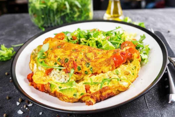 Shredded cheddar cheese, onions, chopped peppers, and avocado to heavenly omelettes.